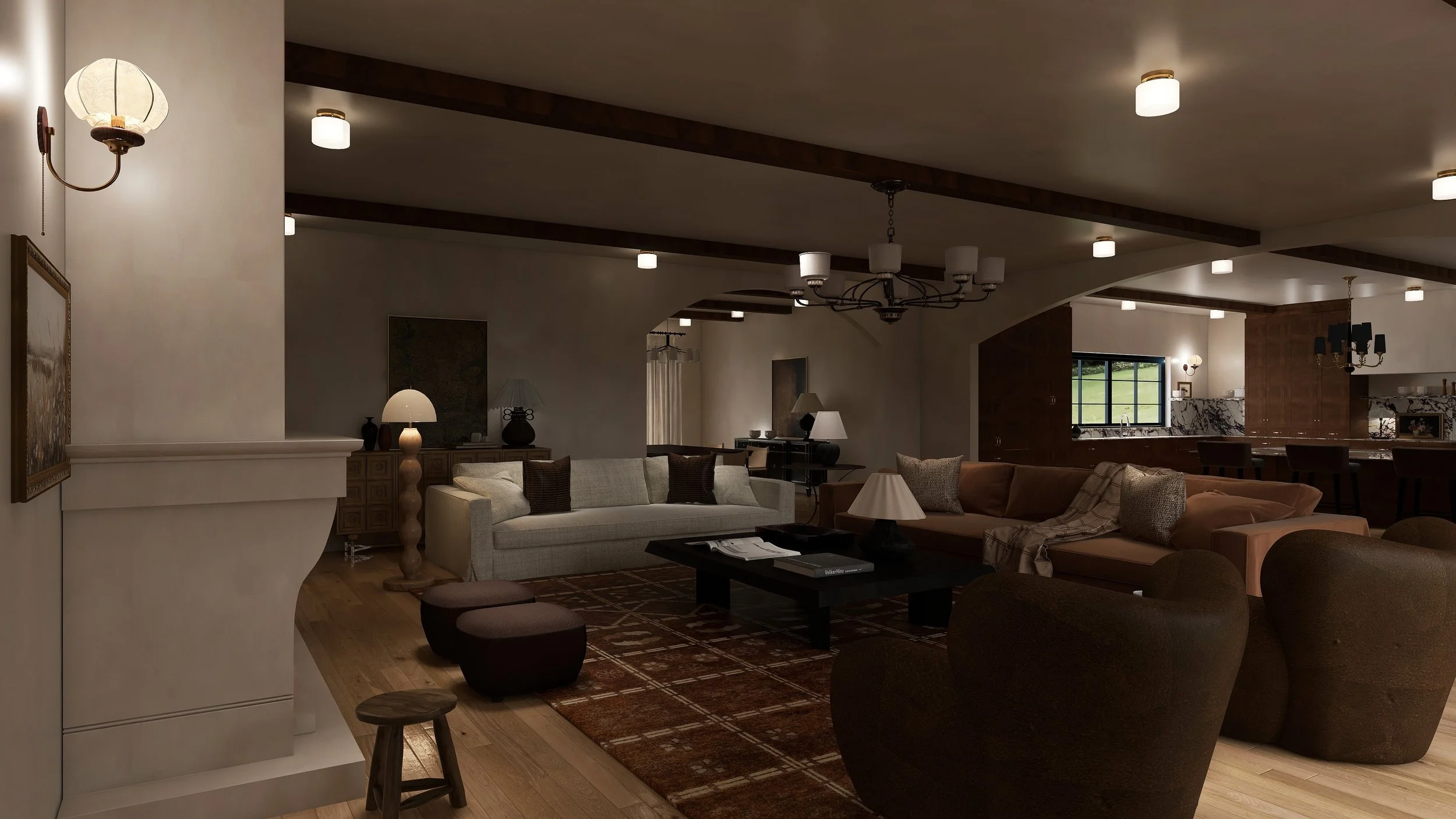 This new build home is a curated reflection of the client's travels and cherished textures, creating a space that feels both worldly and deeply personal. It seamlessly blends rustic charm with elegant furnishings and a sophisticated layered lighting scheme. The foundation is built on natural and tactile materials—such as reclaimed wood, woven textiles, and aged metals—that introduce a sense of history and warmth. These rustic elements are elevated by the inclusion of refined furniture pieces, rich fabrics, and a carefully chosen palette of earthy and muted tones. The lighting is intentionally designed in layers to highlight architectural details, create focal points, and ensure the space transitions effortlessly from bright and airy during the day to intimate and inviting in the evening. The result is a home that is not just aesthetically pleasing, but a true sanctuary that tells a story through its collected and harmonized design.